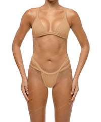 - Detail Feature: Tringle bikini top, Fixed shoulder straps, Double underbust straps, Adjustable tie closure