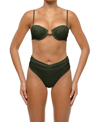 - Detail Feature: Balconette bikini top, Bust gathered detail, Fixed padding with underwire, Adjustable Straps, Clasp closure
