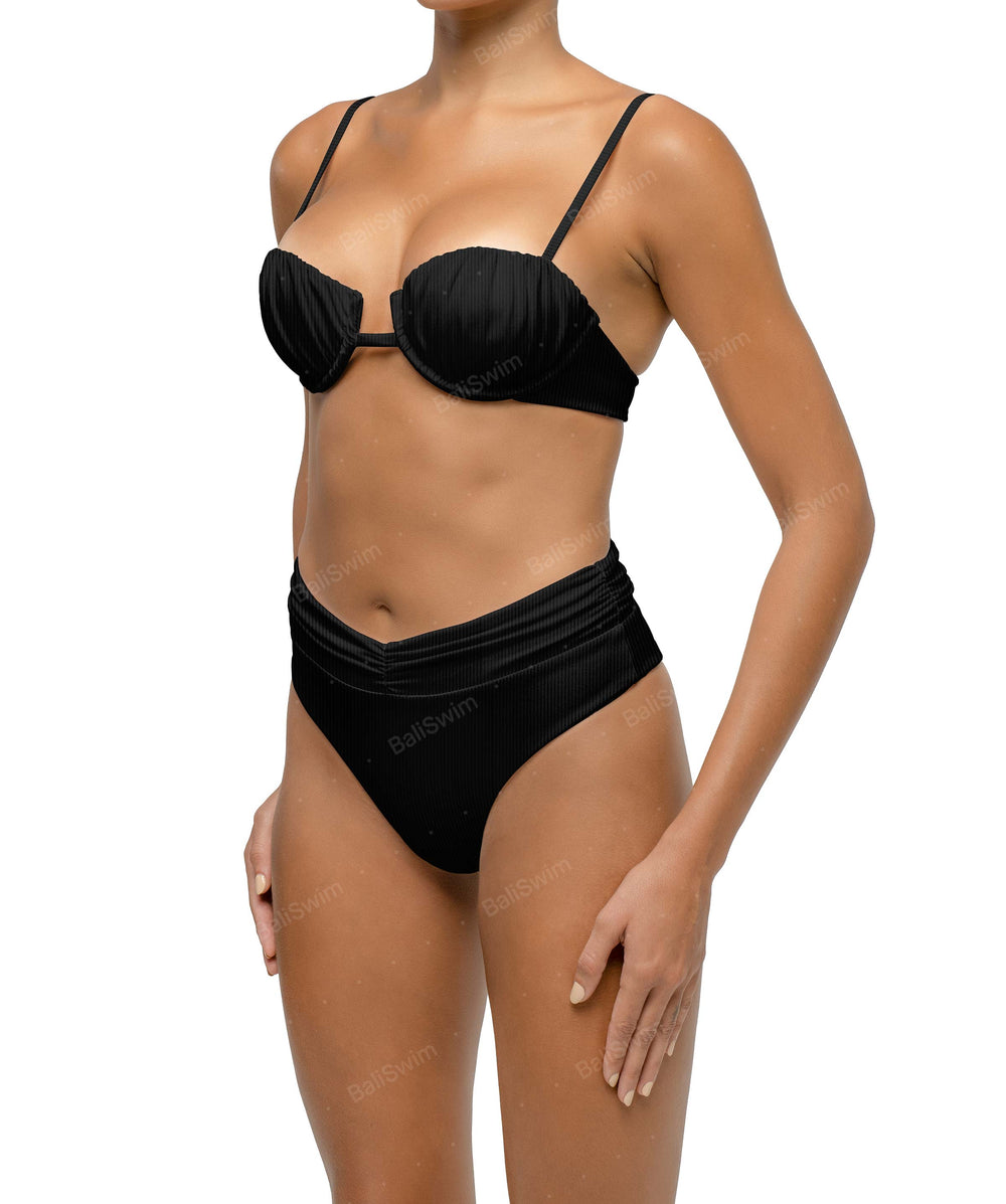 - Detail Feature: Balconette bikini top, Bust gathered detail, Fixed padding with underwire, Adjustable Straps, Clasp closure