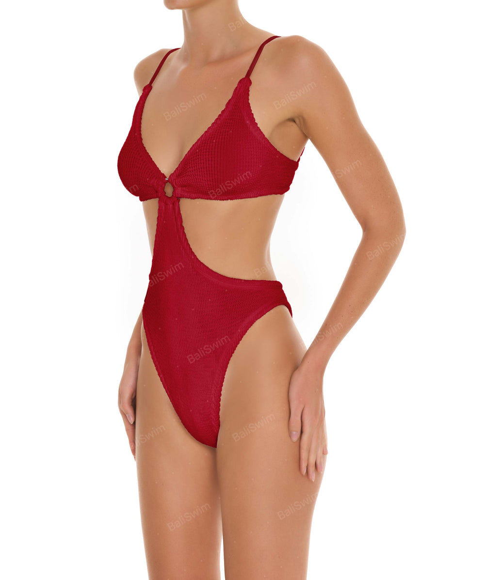 The Red in Unisize Eco Crinkle fabric offers a deep, rich shade of red with a unique crinkled texture. This sustainable fabric not only adds a touch of sophistication but also provides a comfortable and flattering fit for all body type. Ideal for those who value both style and sustainability, this color is perfect for a chic and elegant swimwear line.
