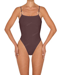 - Detail Feature: Straight neckline one piece, with resin ring details, high leg cut, seamless finishing, option fix straps/ adjustable