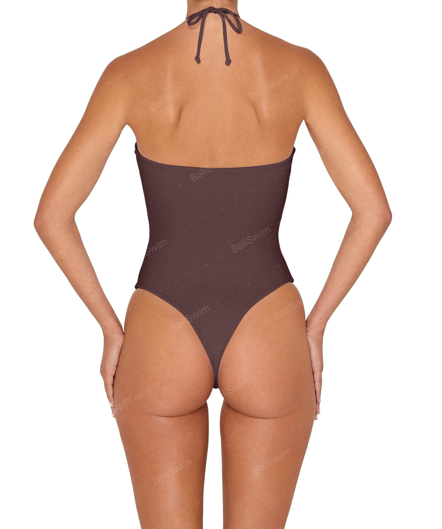 - Style: Halter Tie Neck One Piece With Center Front Cutout