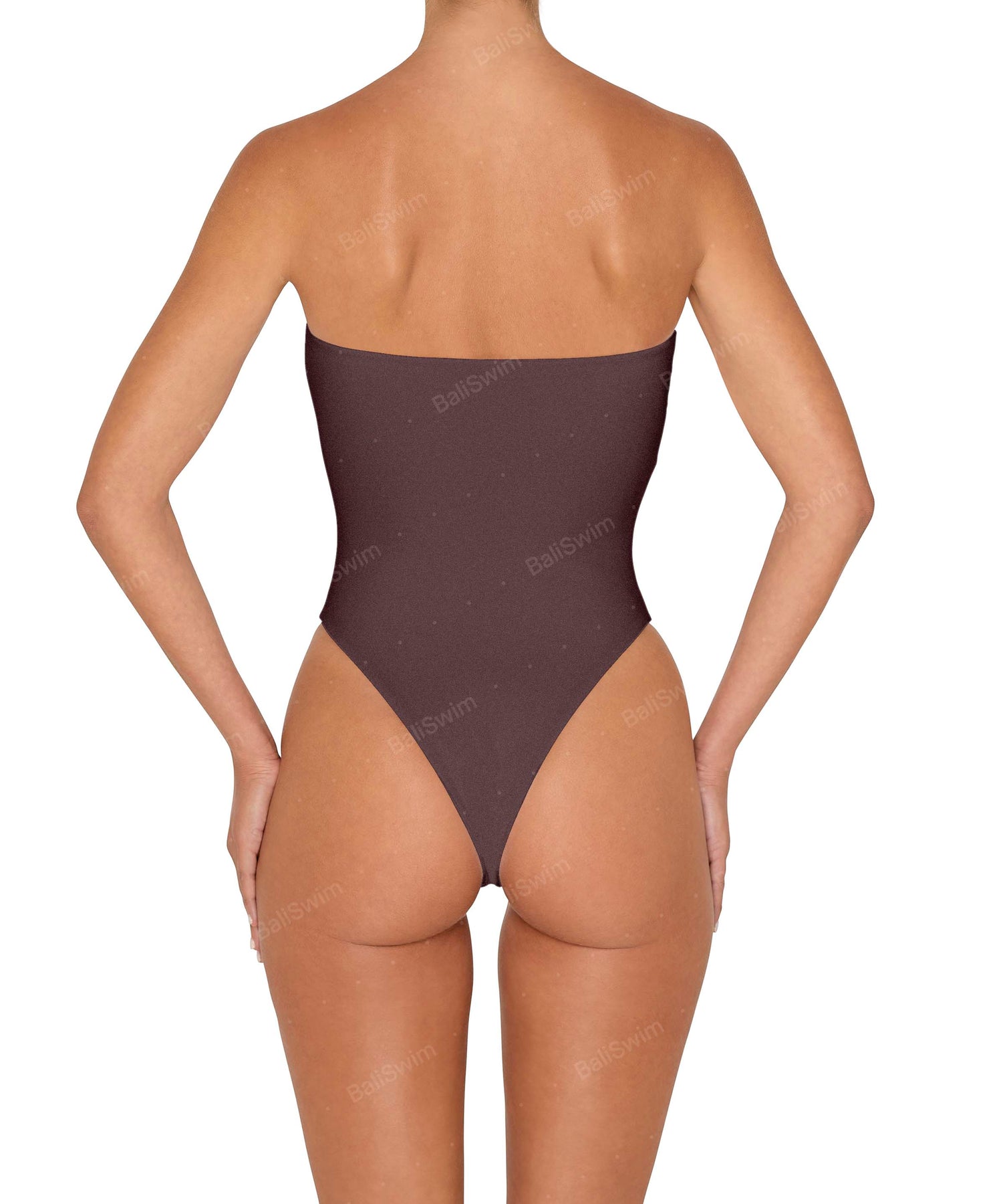 - Detail Feature: Classic strapless onepiece, high hip cut, silicon tape on the top bust to prevent slippage, and seamless finish
