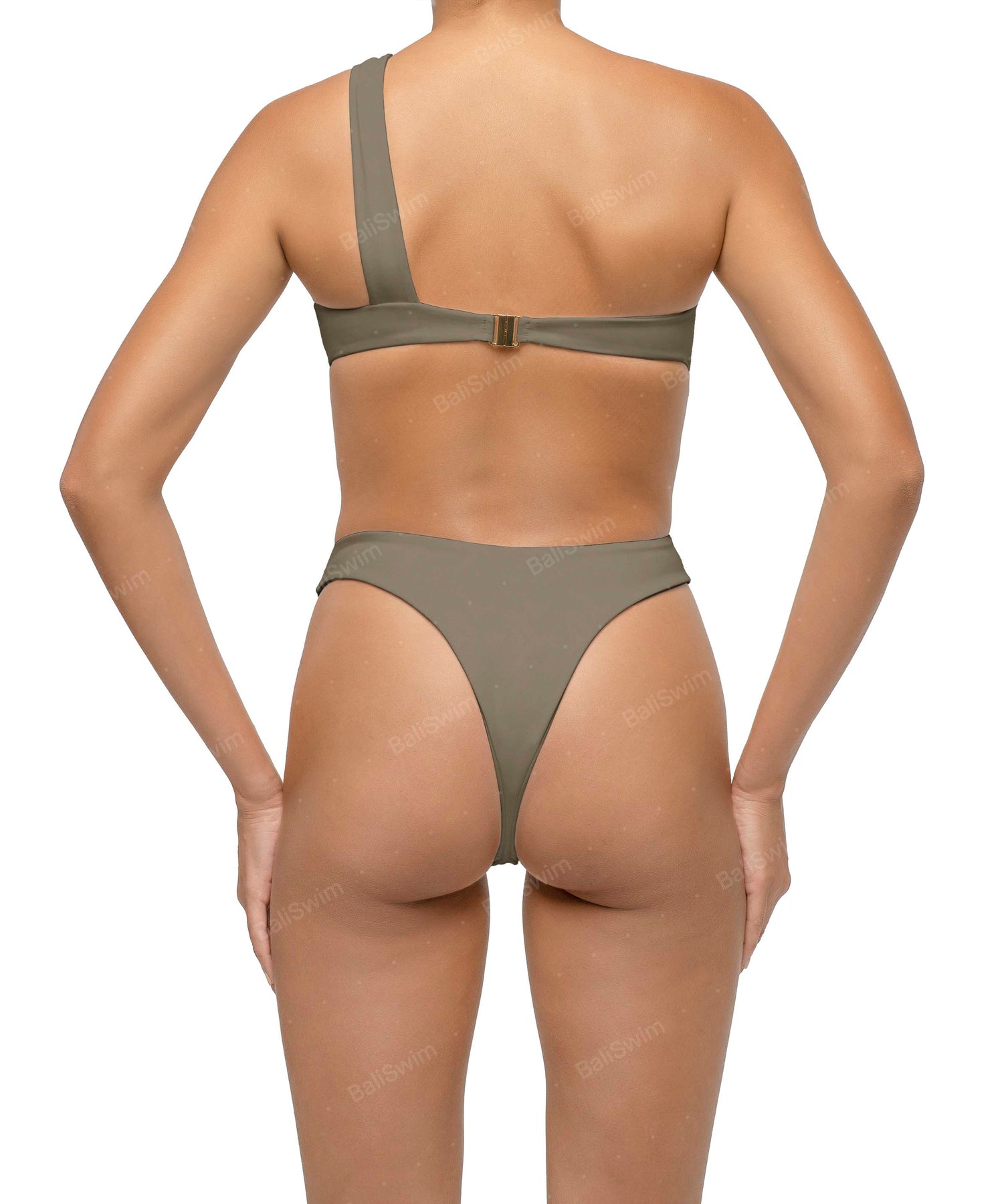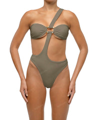 - Detail Feature: One-shoulder one-piece with wave ring detail, front and back cut-outs, clasp closure, and a high-cut leg