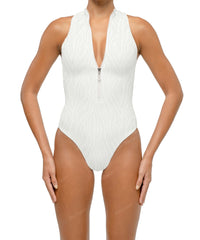 - Detail Feature: Rashguard style, High neck with zipper, High cut