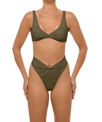 - Detail Feature: Twisted V-waist bikini bottom, High Rise, High cut