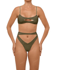 - Detail Feature: Hip cut out bikini bottom, High Rise, High cut