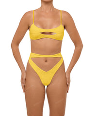 - Detail Feature: Hip cut out bikini bottom, High Rise, High cut