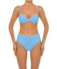 - Detail Feature: High rise bikini bottom, Waistband detail