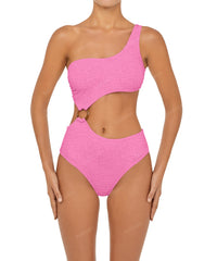 - Detail Feature: One shoulder swimsuit, Connecting O-ring detail, Cut out detail, High rise