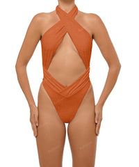 - Detail Feature: Halter cut out one piece, Adjustable halter ties, Criss cross neck, Ruched waist and side seam, Low V-waist, High cut, Low back