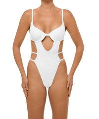 - Detail Feature: V-underwired one piece, Cut out detail, Waist strap detail, Adjustable shoulder straps, High cut