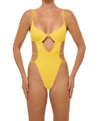 - Detail Feature: V-underwired one piece, Cut out detail, Waist strap detail, Adjustable shoulder straps, High cut