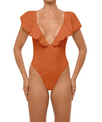 - Detail Feature: Flounce sleeves, Low V-neck, Low back, High cut