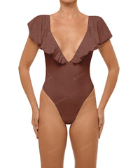 - Detail Feature: Flounce sleeves, Low V-neck, Low back, High cut