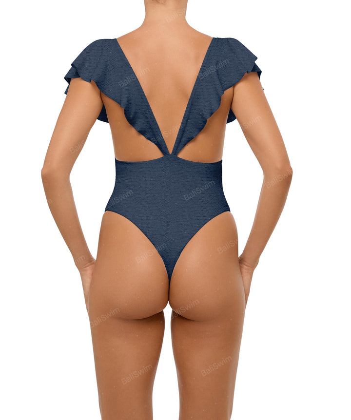 - Detail Feature: Flounce sleeves, Low V-neck, Low back, High cut