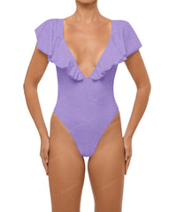 - Detail Feature: Flounce sleeves, Low V-neck, Low back, High cut