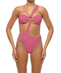 - Detail Feature: One shoulder detail, Wave ring detail, Front and back cut-out, High cut, Clasp closure