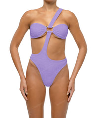- Detail Feature: One shoulder detail, Wave ring detail, Front and back cut-out, High cut, Clasp closure