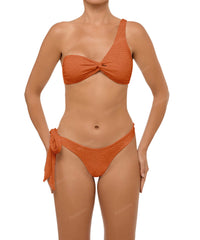 - Detail Feature: Asymmetric bikini top, Fixed shoulder strap, Front loop detail, Clasp closure
