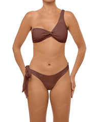 - Detail Feature: Asymmetric bikini top, Fixed shoulder strap, Front loop detail, Clasp closure
