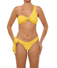 - Detail Feature: Asymmetric bikini top, Fixed shoulder strap, Front loop detail, Clasp closure