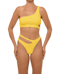- Detail Feature: Asymmetric bikini top, Fixed shoulder strap, Side cut out detail, Pull on style