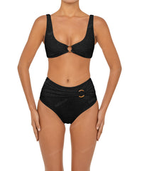 - Detail Feature: Plunge V-neck bikini top, O-Ring detail