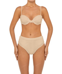 - Detail Feature: High rise bikini bottom, Waistband detail