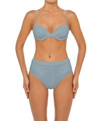 - Detail Feature: High rise bikini bottom, Waistband detail