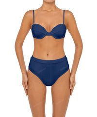 - Detail Feature: High rise bikini bottom, Waistband detail