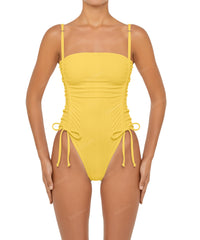 - Detail Feature: Square neck swimsuit, Adjustable gathered detail on princess line, Adjustable straps, Adjustable leg opening