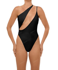 - Detail Feature: Asymmetric cut out one piece, Adjustable double shoulder straps, High cut, Low back