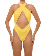 - Detail Feature: Halter cut out one piece, Adjustable halter ties, Criss cross neck, Ruched waist and side seam, Low V-waist, High cut, Low back