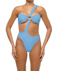 - Detail Feature: One shoulder detail, Wave ring detail, Front and back cut-out, High cut, Clasp closure