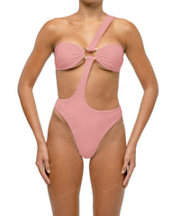 - Detail Feature: One shoulder detail, Wave ring detail, Front and back cut-out, High cut, Clasp closure