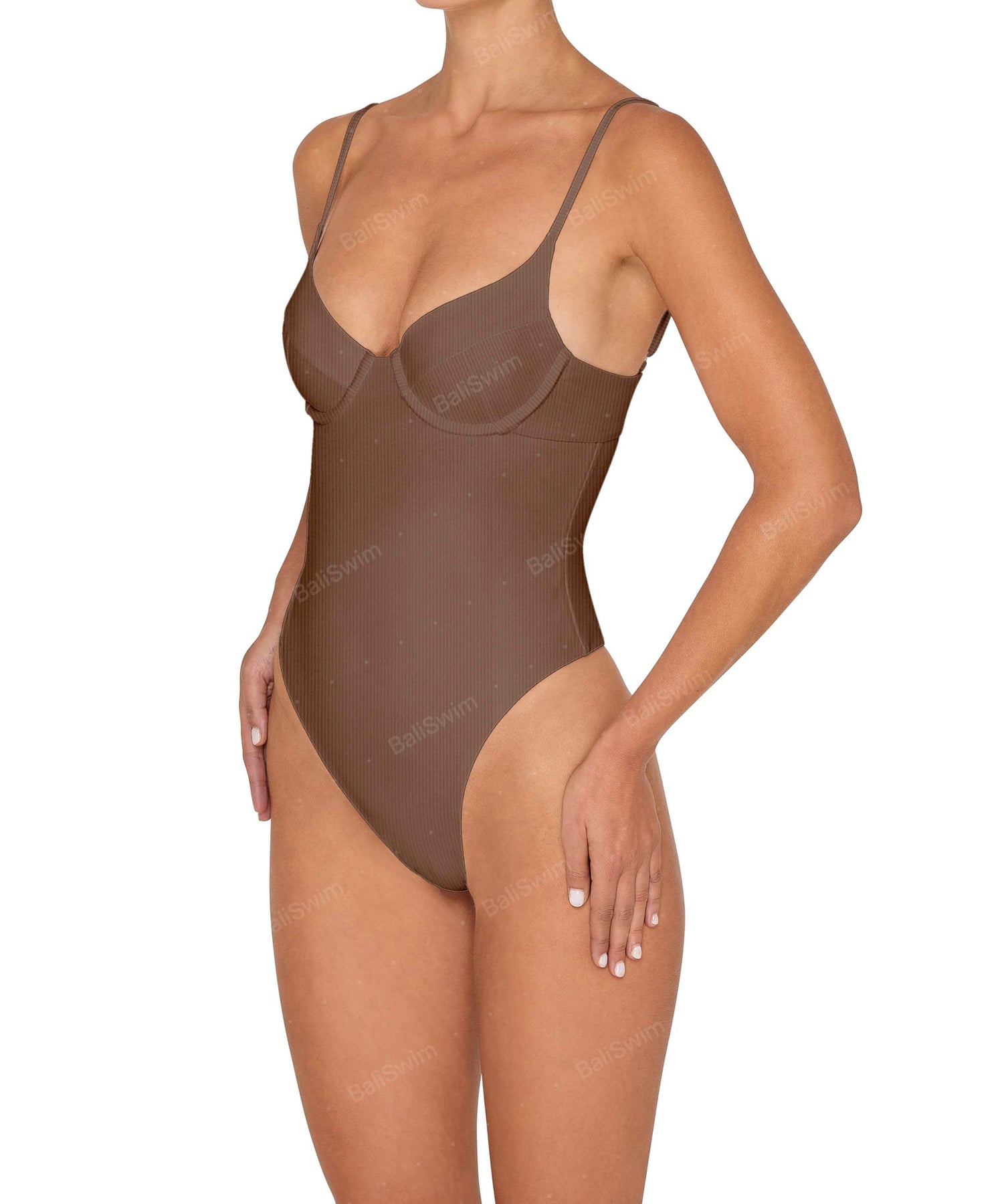 - Detail Feature: Classic underwire one piece with adjustable straps, high leg opening, back cut-out and back clasp
