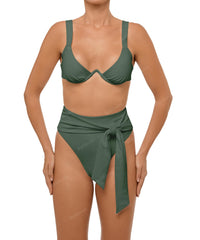 - Detail Feature: V-underwire bikini top, Fixed wide shoulder straps, Gathered bust detail, Adjustable tie closure, Bralette style