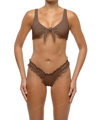 - Detail Feature: Plunge V neck bikini top, Front tie knot closure