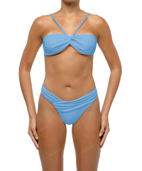 - Detail Feature: Halter bandeau bikini top, Front loop bandeau, Draped detail, Adjustable shoulder straps, Adjustable tie closure