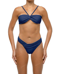 • Detail Feature: Halter bandeau bikini top, Front loop bandeau, Draped detail, Adjustable shoulder straps, Adjustable tie closure