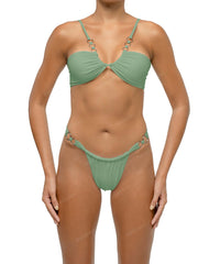 - Detail Feature: Bandeau bikini top, Adjustable shoulder straps, Rings detail, Clasp Closure