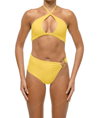 - Detail Feature: Halter bikini top, Bust cut-out detail, Twist detail, Pull on style