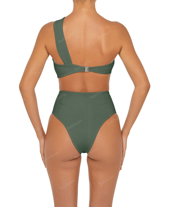- Style: Ruched One Shoulder Bikini Top