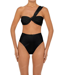 - Detail Feature: One shoulder bandeau bikini top, Ruched detail, Clasp closure