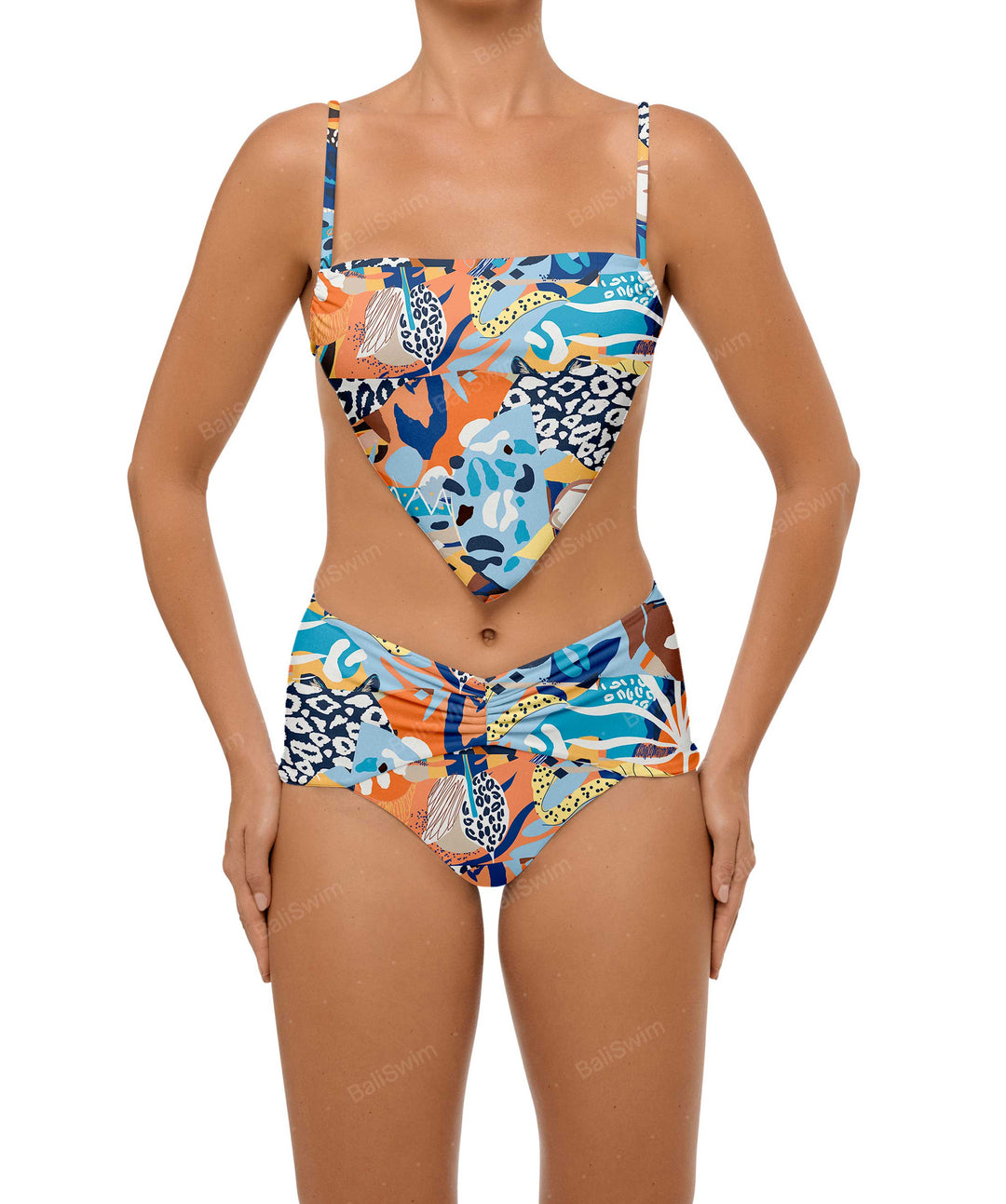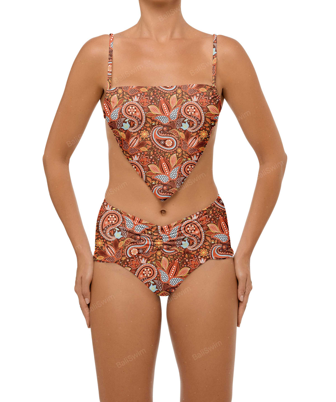 Ruched High Rise Bikini Bottom Print Sweet Savanna (BSWS-B97) by Bali Swim