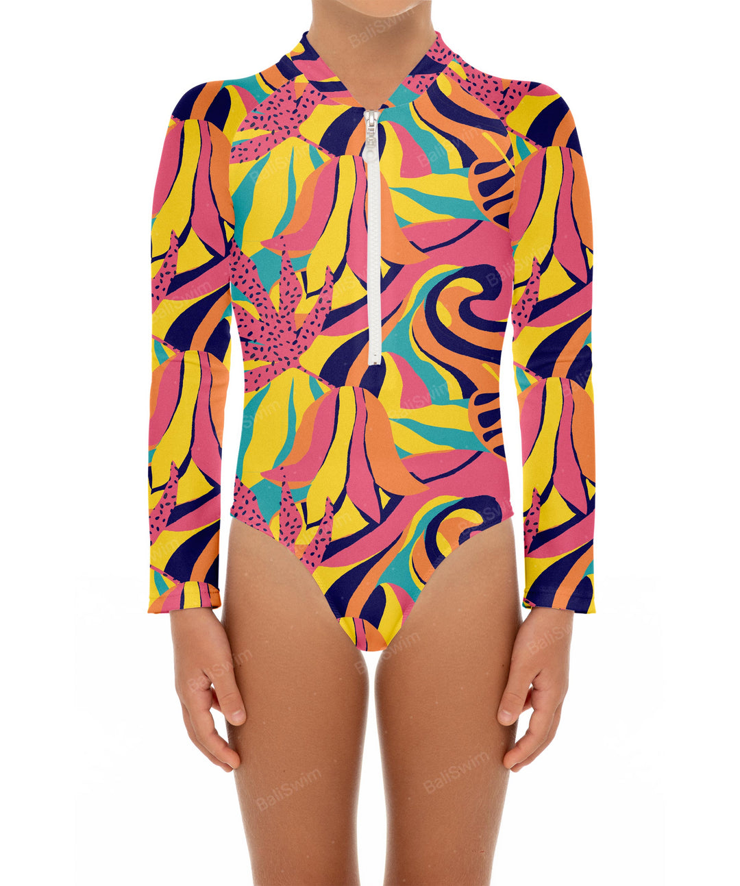 Girl's Rash Guard One Piece Print Violet Peonies Fairy Tale (BSGS-RS02) by Bali Swim