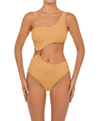 - Detail Feature: One shoulder swimsuit, Connecting O-ring detail, Cut out detail, High rise