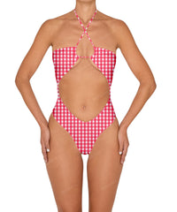 BSWS-S82 Halter Tie Neck One Piece With Center Front Cutout