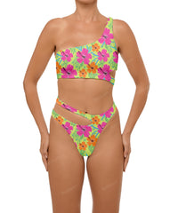 - Detail Feature: Asymmetric bikini top, Fixed shoulder strap, Side cut out detail, Pull on style